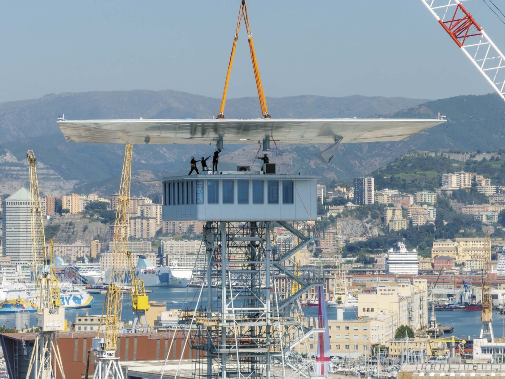 La nuova Torre dei Piloti è stata ideata dall’architetto Renzo Piano per sostituire quella che era stata distrutta nell’incidente del 2013. All’interno del più ampio progetto per il Waterfront di Levante, è posizionata in punta alla darsena grande della Fiera, rappresenta un luogo della memoria e un nuovo riferimento per la città.